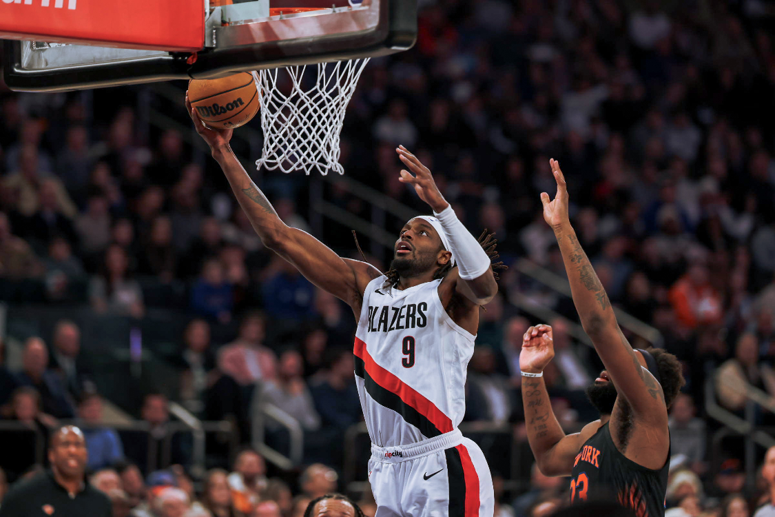 尼克斯队的布伦森上半场得到19分,哈特得到11分和3个篮板,唐斯得到5分和13个篮板;开拓者队的夏普得到17分,格兰特得到11分。